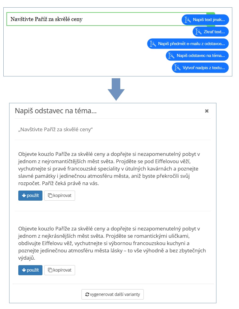 Také při tvorbě e-mailu můžete využít AI, která i zde má své mouchy. Nabídka je širší než u většiny konkurence, ale stejně jako tam i se tady setkáte s tím, že občas navrhne dvě úplně stejné varianty, případně se liší tak málo, že to ani na první pohled nepostřehnete.Jako prima možnost v nabídce AI nám přijde to, že z jediné věty dokáže vytvořit celý odstavec: