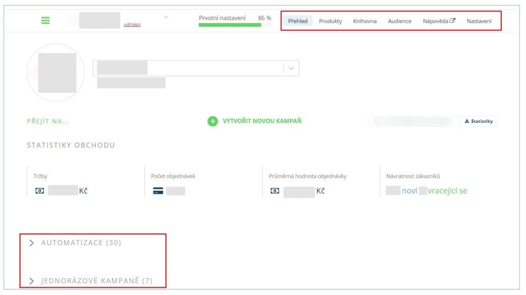 Než se ponoříme do samotného prostředí, chceme vyzdvihnout, že pokud nastavujete e-mailing pro e-shop na Shoptetu, čeká vás na začátku skvěle zvládnutý onboarding do aplikace. Spousta věcí se předvyplní, natáhnou se produkty, dokonce se i automaticky připraví šablona podle barev vašho e-shopu, doplní se logo apod. To je funkce, jakou mnoho nástrojů nedisponuje.Leadhub dokáže obsloužit i úplný začátečník, uživatelé oceňují, že ovládání je velmi intuitivní. Co vás může trochu mást, pokud jste předtím používali jiný nástroj, je jiné uspořádání jednotlivých funkcí. Standardně mívají e-mailingové nástroje funkce pohromadě v menu (v postranní nebo horní liště), zatímco Leadhub má některé funkce v horním menu, ale automatizace a kampaně v rámci hlavního dashboardu. Pokud však bude Leadhub vaším prvním e-mailingovým nástrojem, nehraje rozdíl v uspořádání žádnou roli.