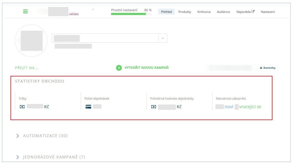Nástroj ukazuje i celkové statistiky, jak se vašemu e-shopu daří. To je podle nás trochu matoucí, protože by bylo vhodnější primárně prezentovat to, jakou měrou se na tržbách e-shopu podílí právě e-mailing od Leadhubu. Tato informace je také k dispozici, ale je schovaná.