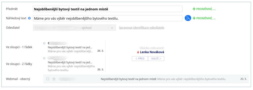 Co se nám v Leadhubu také hodně líbí, je společný náhled předmětu a preheaderu. Na první pohled vidíte, jak k sobě „pasují“, a hlavně to, jak se budou zobrazovat v různých klientech a na různých zařízeních: