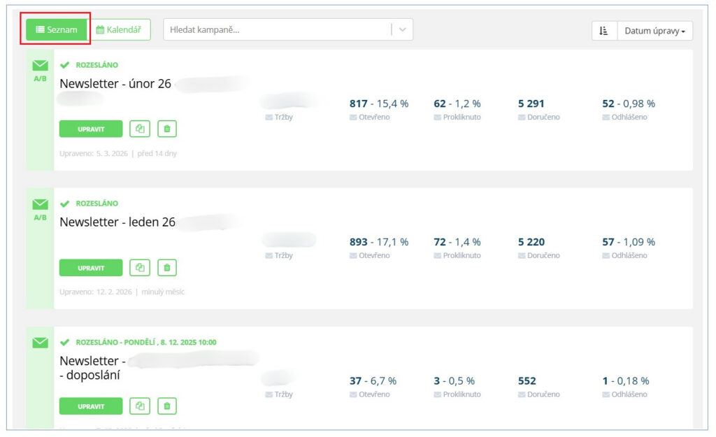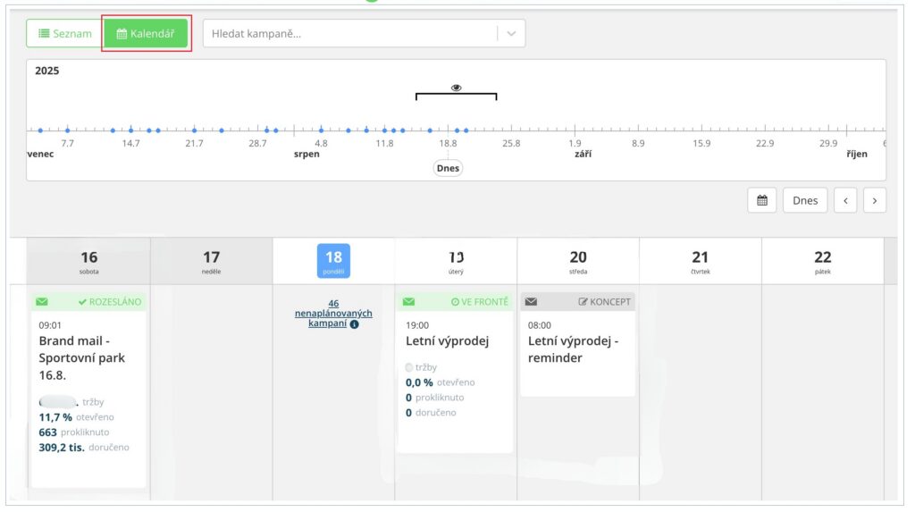 - výkonnost kampaní v čase.